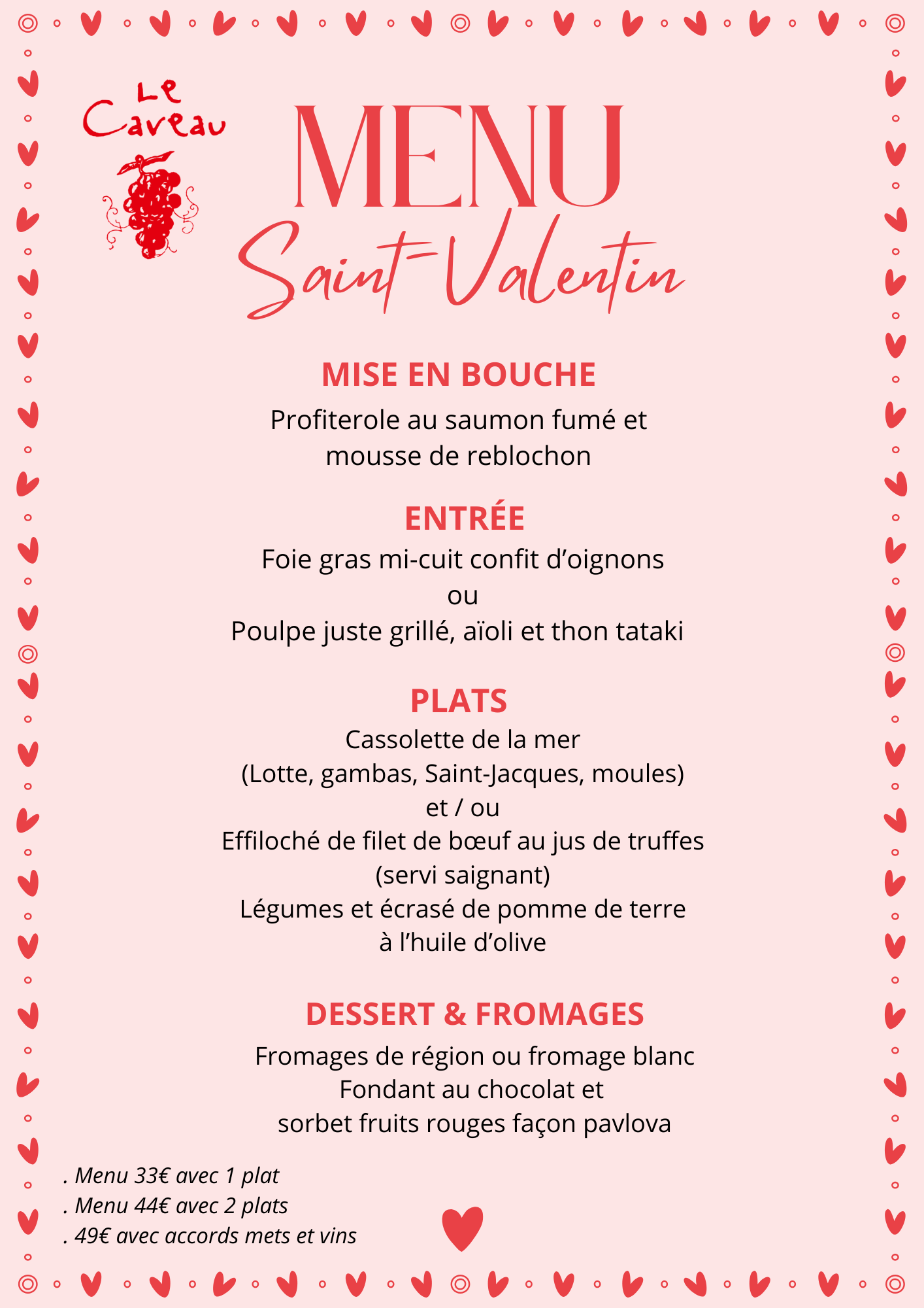 Contactez-nous : Lecaveau.resto@gmail.com